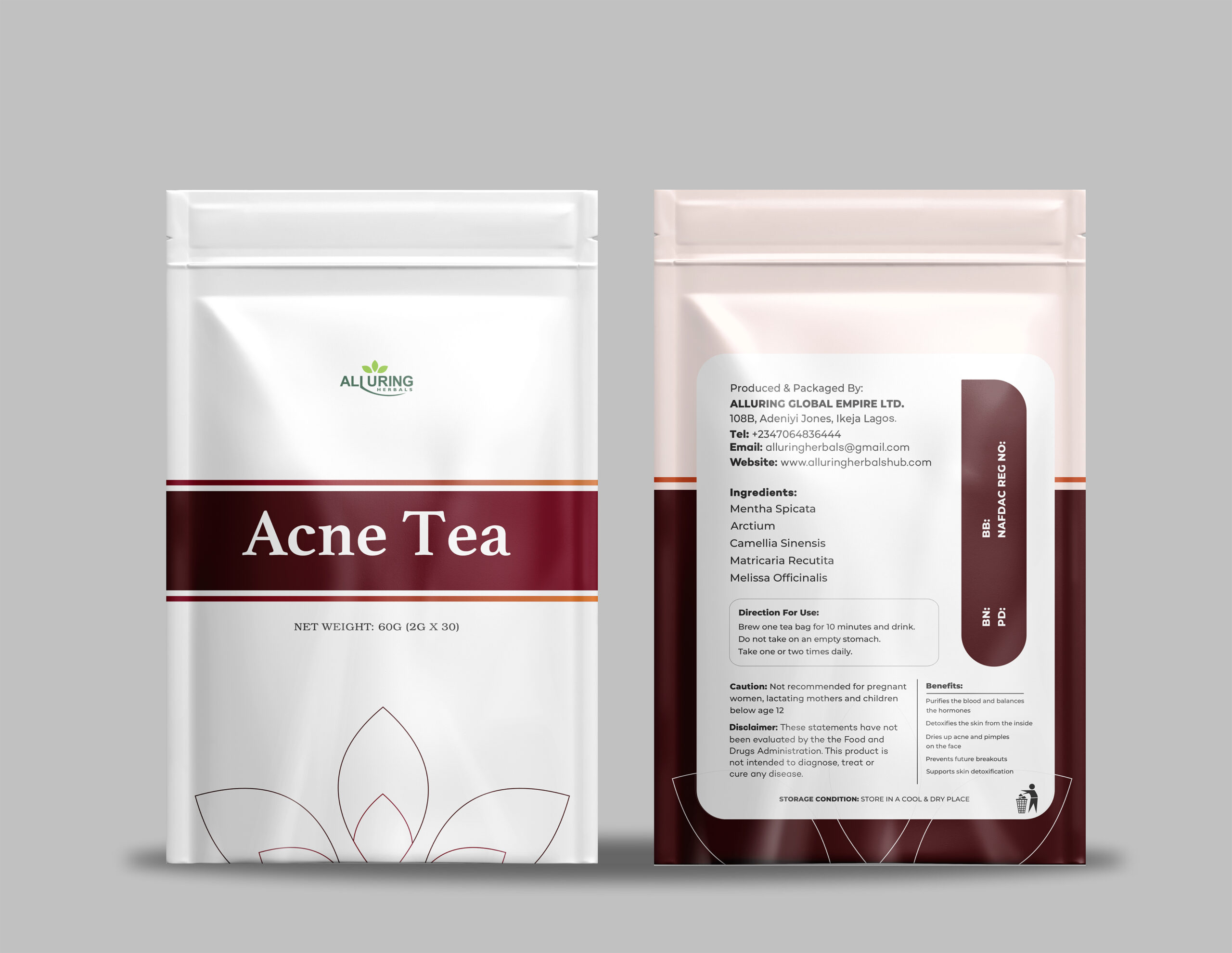 Our Acne Tea is a carefully formulated herbal blend designed to support clear, healthy skin from within. It works by gently supporting the body’s natural cleansing processes and helping to maintain internal balance that may contribute to breakouts.